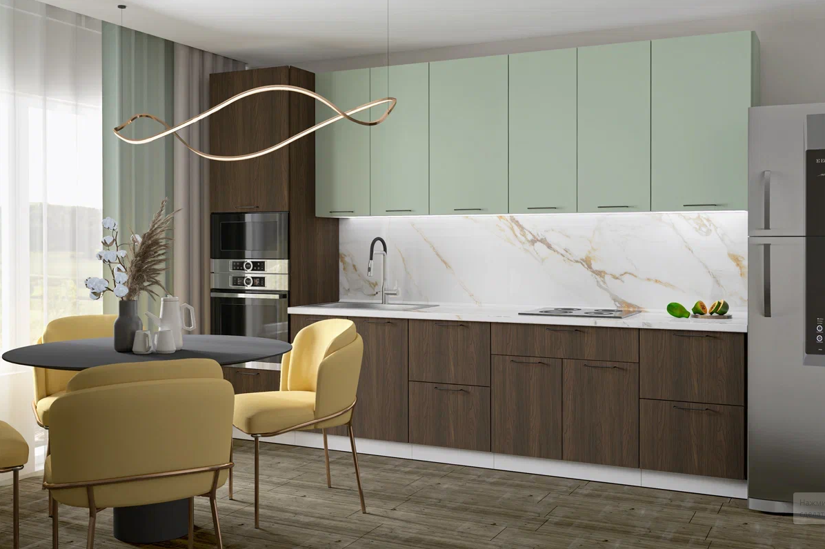 Цена указана за линейную кухню 3232 мм. фасад МДФ (Эвкалипт софт/Ясень голд), корпус белый.
