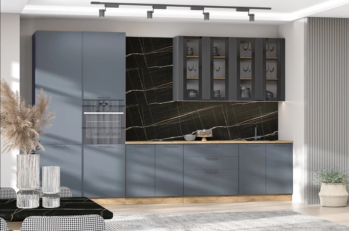 Цена указана за линейную кухню 3636 мм. фасад МДФ (Графит Р-810, Монако), корпус дуб крафт золотой.