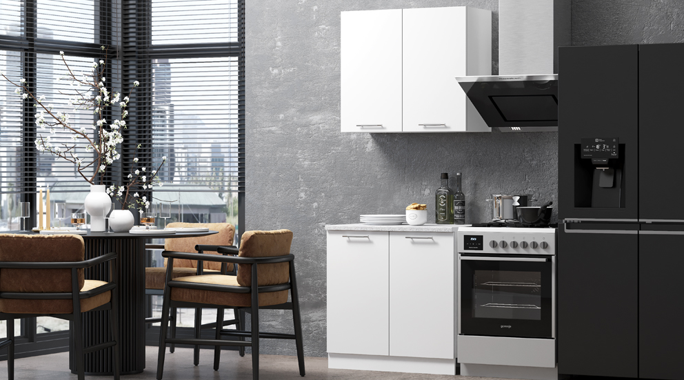 В готовых кухонных наборах Люкс собраны необходимые ящики сверху и снизу и столешницей в рабочей зоне.