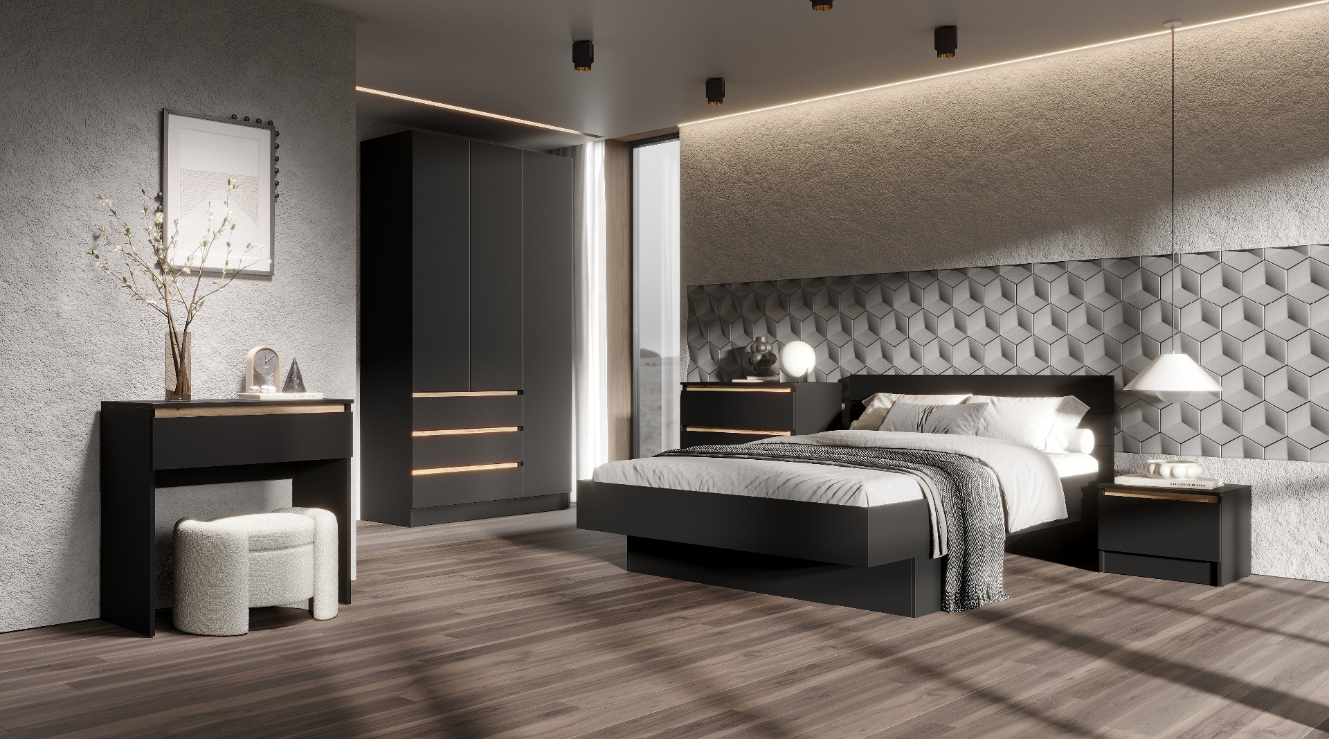 Также доступны варианты спальни в других цветах: кашемир или графит. Стоимость уточняйте.